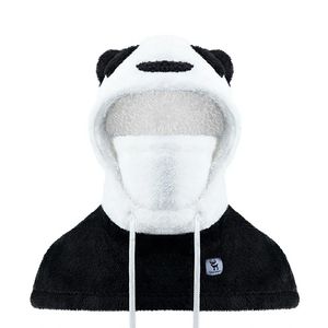 Ciepła kominiarka zimowa z futerka Panda dla dzieci i dorosłych rozmiar L - czarna/biała