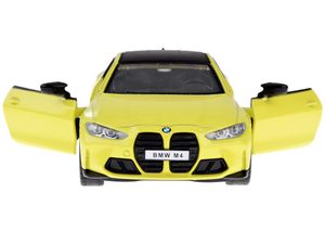 Auto metalowe BMW M4 dla dzieciBMW M4 w skali 1:32 będzie świetnym uzupełnieniem kolekcji modeli samochodów. Sportowy pojazd został bardzo starannie i estetycznie wykonany z dbałością o najmniejsze szczegóły co zapewne zachwyci każdego małego kierowcę. Autko posiada otwierane drzwi a także efekty dźwiękowe i świetlne. BMW posiada napęd typu friction power, czyli po cofnięciu go po gładkiej, równej powierzchni pomknie przed siebie. Samochód działa również na popych.Po otwarciu drzwi auta metalowego BMW M4 usłyszymy odgłos klaksonu oraz dźwięk alarmu. Dociśnięcie pojazdu do podłoża uruchamia odgłos odpalania i pracy silnika. Efektom dźwiękowym towarzyszą światła z przodu i z tyłu samochodu oraz podświetlana deska rozdzielcza. Cała karoseria pojazdu jest metalowa, koła gumowe, podwozie wykonane jest z plastiku.Specyfikacja zabawki BMW M4:kolor: neonowa zieleń,karoseria metalowa,koła gumowe,podwozie plastikowe,otwierane drzwi, efekty dźwiękowe,świecące światła przód, tył, podświetlana deska rozdzielcza,napęd Friction power,wymiary pojazdu: 14,5 x 5,8 x 4,5 cm,zasilanie: 3 x LR44 (w zestawie).Ten fantastyczny model może być zarówno zabawką dla małego kierowcy jak i elementem kolekcji modeli samochodów. Auto zapakowane w kolorowe pudełko, idealnie nadające się na prezent.