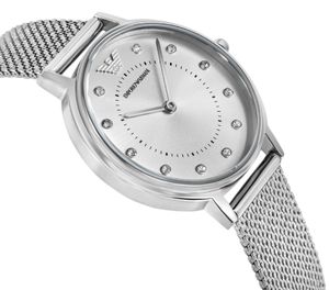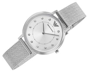 Zegarek Damski Emporio Armani Kappa AR11128 Zegarek Damski Emporio Armani Kappa AR11128 to elegancki czasomierz stworzony z myślą o kobietach ceniących włoski prestiż i ponadczasowy styl. Wykonany z wysokiej jakości stali szlachetnej w kolorze srebrnym, prezentuje się wyjątkowo elegancko i uniwersalnie, doskonale dopasowując się do każdej stylizacji. Minimalistyczna tarcza z charakterystycznym logo Emporio Armani oraz precyzyjny mechanizm kwarcowy gwarantują niezawodność i dokładność działania. Stalowa bransoleta typu mesh idealnie układa się na nadgarstku, zapewniając komfort noszenia przez cały dzień. Model AR11128 doskonale sprawdzi się zarówno w codziennych, jak i bardziej wyjątkowych okazjach. To symbol kobiecej elegancji, subtelności oraz luksusowego designu. Zegarek Emporio Armani Kappa AR11128 to idealny wybór dla kobiet, które pragną podkreślić swój styl i klasę. Opis produktu:Marka: Emporio ArmaniSymbol: AR11128Model: KappaMechanizm: KwarcowyTarcza: AnalogowaKoperta: Stal szlachetnaSzkiełko: MineralneBransoleta: Stal szlachetnaWodoszczelność: 3 BARAntyalergiczny: Tak - nie zawiera niklu Wymiary w mm:Koperta średnica: 32Tarcza średnica: 27Grubość: 6Bransoleta szerokość: 14Bransoleta Obwód: 150 - 200 Kolorystyka:Koperta: srebrnaTarcza: srebrnaLogo na tarczy: srebrneIndeksy: jasne cyrkonieWskazówki: srebrneKoronka: srebrnaBransoleta: srebrna BŁYSK LUKSUSU W KAŻDEJ SEKUNDZIEZegarek Emporio Armani Kappa AR11128 – zegarek, który sprawia, że każda chwila staje się wyjątkowa. To więcej niż dodatek – to manifest elegancji, kobiecości i włoskiego szyku. Delikatny blask srebrnej stali, subtelna tarcza ozdobiona logo Emporio Armani i perfekcyjna harmonia kształtów tworzą kompozycję, obok której nie sposób przejść obojętnie. Każdy detal został zaprojektowany z myślą o kobietach, które lubią wyróżniać się klasą – dyskretnie, ale z charakterem. Precyzyjny mechanizm kwarcowy dba o punktualność, a lekka bransoleta typu mesh otula nadgarstek niczym biżuteria. To zegarek, który doskonale dopełni zarówno elegancką kreację, jak i codzienny look. Emporio Armani AR11128 – błysk luksusu w każdej sekundzie. Bo styl to coś, co nigdy nie wychodzi z mody. BRANSOLETA STALOWA MESHBransoleta zegarka to połączenie elegancji, wygody i nowoczesnego stylu. Wykonana ze stali szlachetnej, zachwyca delikatną strukturą typu mesh, która nadaje jej lekkości i wyjątkowego charakteru. Jej subtelnie pleciona faktura doskonale układa się na nadgarstku, gwarantując idealne dopasowanie i wysoki komfort noszenia przez cały dzień. To rozwiązanie, które łączy w sobie wytrzymałość metalu z finezją biżuterii, tworząc bransoletę idealnie wpisującą się w minimalistyczny, a zarazem luksusowy styl zegarka. Bransoleta mesh dodaje modelowi nowoczesnego wyrazu i sprawia, że zegarek staje się nie tylko narzędziem odmierzania czasu, ale także wyrafinowanym elementem męskiej elegancji. SZKIEŁKO MINERALNE - OPTYMALNA OCHRONA TARCZYSzkiełko zastosowane w tym modelu zegarka wykonano z krzemowego szkła mineralnego, które charakteryzuje się większą twardością w porównaniu do szkła syntetycznego. Dzięki temu skutecznie chroni tarczę przed zarysowaniami, uszkodzeniami i zabrudzeniami. Co więcej, szkło mineralne cechuje się elastycznością, co sprawia, że jest mniej podatne na pęknięcia i stłuczenia. Dodatkowo zapewnia doskonałą przejrzystość oraz jasność, co znacząco ułatwia szybki i wyraźny odczyt godziny w różnych warunkach oświetleniowych. MECHANIZM KWARCOWY - dokładność i niezawodnośćWysoka dokładność pomiaru czasu dzięki zastosowaniu kryształu kwarcowego pozwala Ci na bezproblemowe planowanie każdego dnia. Dodatkowo, intuicyjna obsługa sprawia, że nie trzeba się martwić o skomplikowane nakręcanie czy ustawianie czasu, co zwiększa wygodę użytkowania. Wymiana baterii to jedyna regularna czynność, którą należy wykonywać podczas użytkowania kwarcowego zegarka. To idealny wybór dla zapracowanych mężczyzn, którzy cenią sobie komfort i prostotę w działaniu zegarka. WODOODPORNOŚĆ 3 ATMOferuje ochronę i niezawodność, które są niezbędne w codziennych sytuacjach. Wodoodporność na poziomie 3 ATM czyli 30 metrów to cecha, która, mimo że nie czyni zegarka idealnym do profesjonalnych nurkowań, oferuje szereg korzyści w codziennym użytkowaniu. Taki zegarek jest wystarczająco odporny na wodę, aby sprostać wielu typowym sytuacjom, które mogą się zdarzyć na co dzień: np. nagłe opady deszczu czy przypadkowe zachlapanie.DODATKOWE MOŻLIWOŚCI TWOJEGO ZEGARKA Zegarek Emporio Armani Kappa AR11128 łączy w sobie styl i funkcjonalność. Oprócz precyzyjnego mechanizmu kwarcowego oferuje odporność na zachlapania (3 ATM), dzięki czemu bez obaw możesz nosić go na co dzień – nawet podczas deszczu. Trwała stalowa bransoleta typu mesh gwarantuje komfort i dopasowanie, a czytelna tarcza z logo Emporio Armani sprawia, że zawsze prezentuje się elegancko. To zegarek, który nie tylko odmierza czas, ale również podkreśla Twój niepowtarzalny styl każdego dnia. ZESTAW, KTÓRY ROBI WRAŻENIEStylowe, oryginalne pudełko Emporio Armani to przedsmak tego, co czeka w środku. Wykonane z najwyższą precyzją, minimalistyczne, a jednocześnie pełne klasy opakowanie zegarka idealnie oddaje ducha tej marki. Otwierasz pudełko, a w środku czeka na Ciebie wyjątkowy czasomierz. Ten zestaw to gotowy prezent dla Ciebie samego lub dla kogoś, kto naprawdę zasługuje na coś specjalnego.W ZESTAWIE OTRZYMASZ:Oryginalny zegarek marki Emporio ArmaniMarkowe pudełko Emporio Armani z dedykowanym wkładem na zegarekKartę gwarancyjną i instrukcję obsługiCertyfikat Autentyczności CLG ZEGAREK EMPORIO ARMANI - LUKSUS, KTÓRY MÓWI SAM ZA SIEBIE Włoski charakter Emporio Armani widać w każdym szczególe – minimalistyczne wzornictwo i perfekcyjnie czyste tarcze